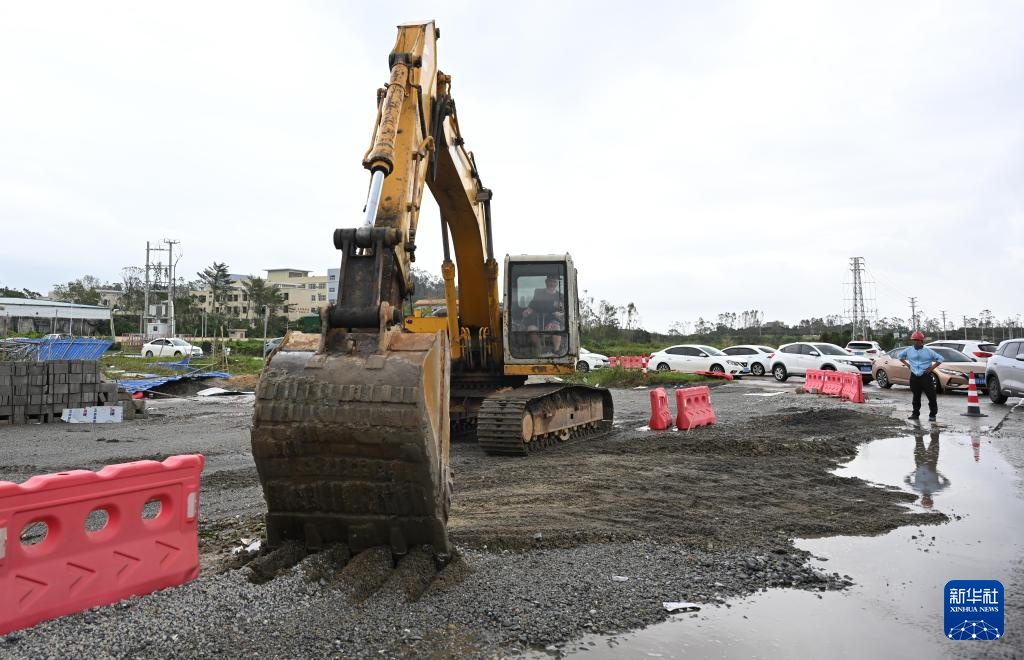9月25日,在广东阳江市阳东区的县道上,工作人员在抢修道路。
