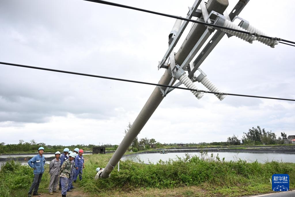 9月25日,在广东阳江市大沟镇三丫村,南方电网工作人员在勘查受损电力设施。