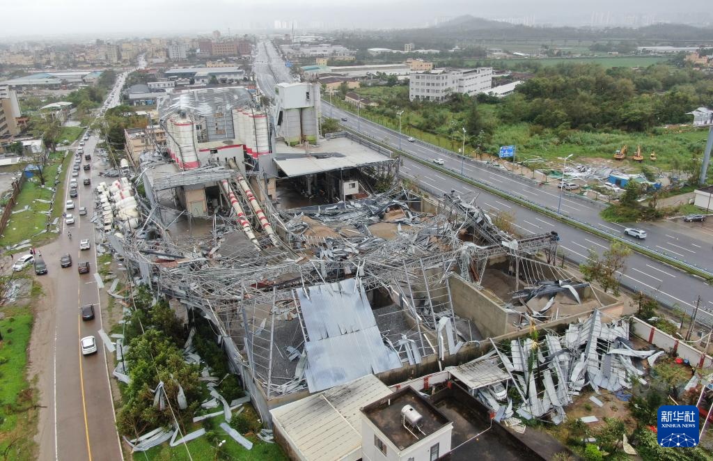 9月25日,在广东阳江市新睿建材有限公司,台风过后一片狼藉(无人机照片)。