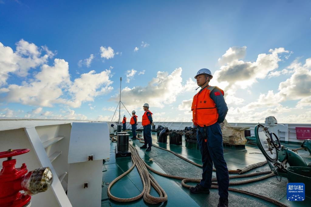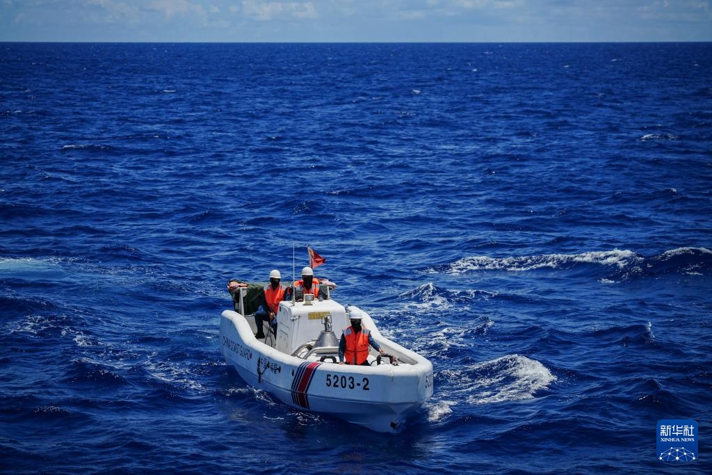 夏秋之交,祖国“南海明珠”壮阔浩渺,风光无限,海洋经济活动进入繁荣时期。为守护好这片和平、友谊、合作之海,中国海警直属第五局多个舰艇编队在我国南海仁爱礁附近海域执行值守巡航任务。中国海警执法员克服南海海域近期高温高湿、台风频繁等不利条件,开展常态巡逻执法、服务过往船舶、清理海洋垃圾、组织日常训练等工作。面对意图非法冲闯我国仁爱礁附近海域的外方船只,中国海警果断依法采取管控措施,坚决警告驱离。无论面对多大的风浪,中国海警守护南海稳定、捍卫祖国领土主权和海洋权益的决心始终坚定不移。