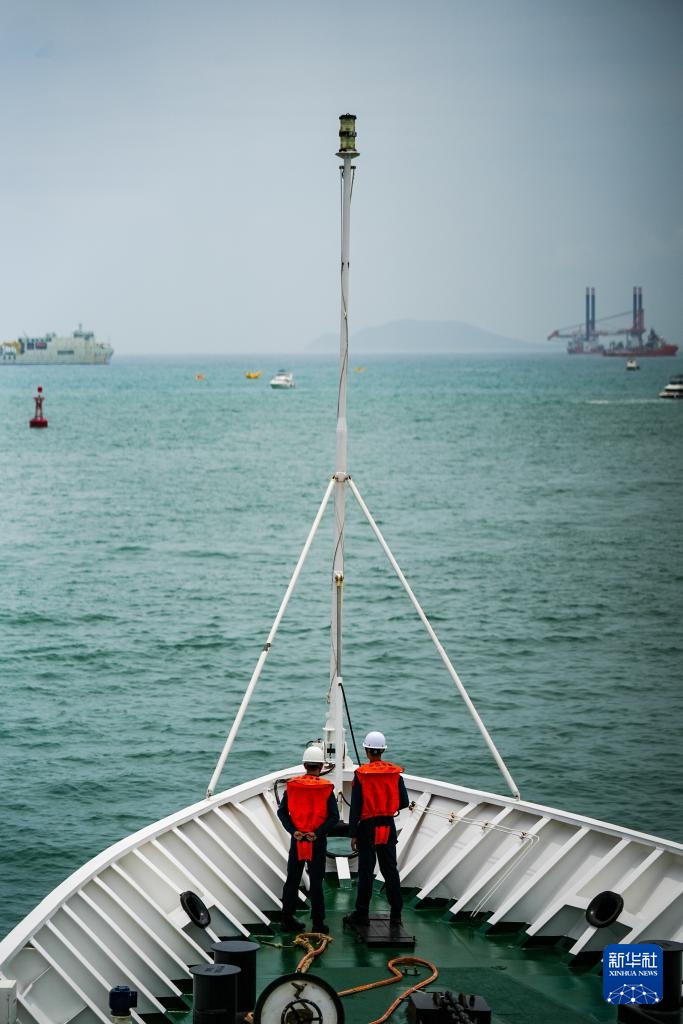 8月6日,在海南三亚附近海域,中国海警华阳舰执法员在观察航线。