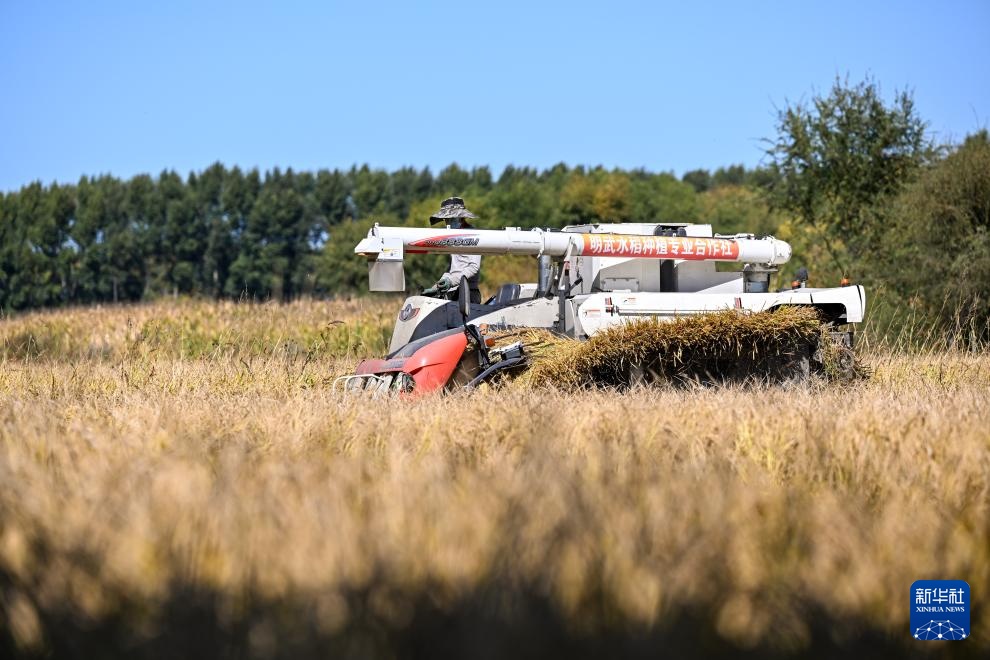 金秋时节,内蒙古兴安盟乌兰浩特市的水稻喜迎丰收。农户们抢抓晴好天气,加紧收割加工。