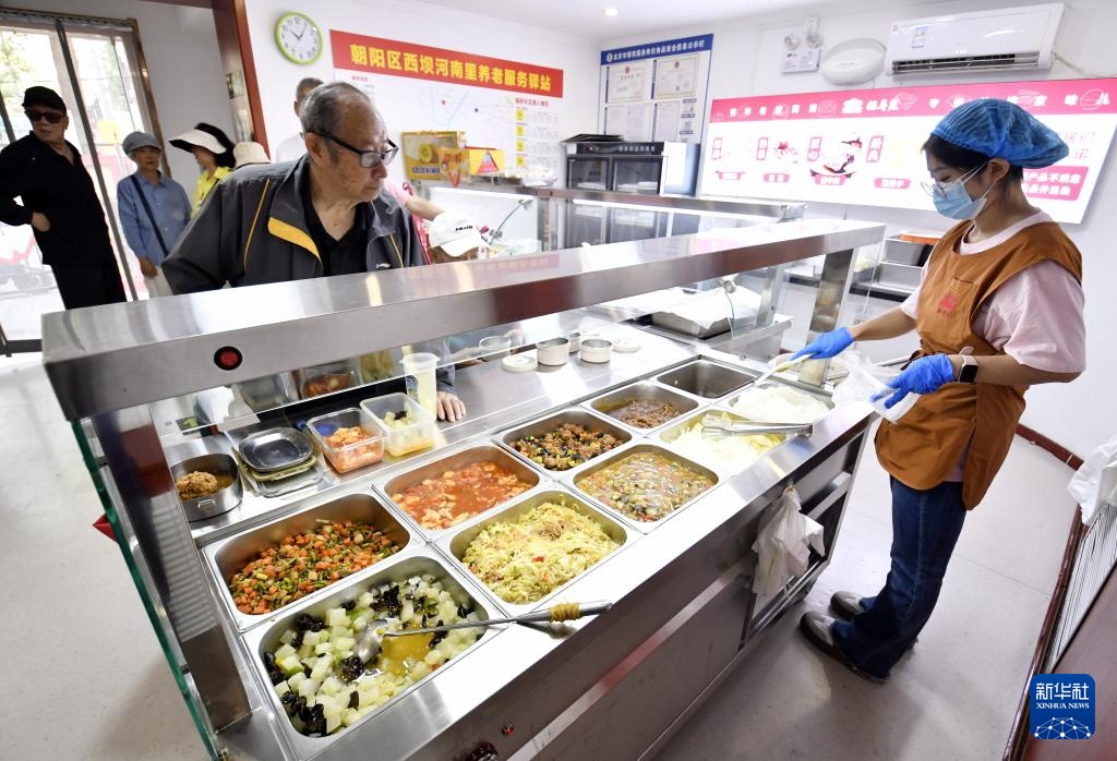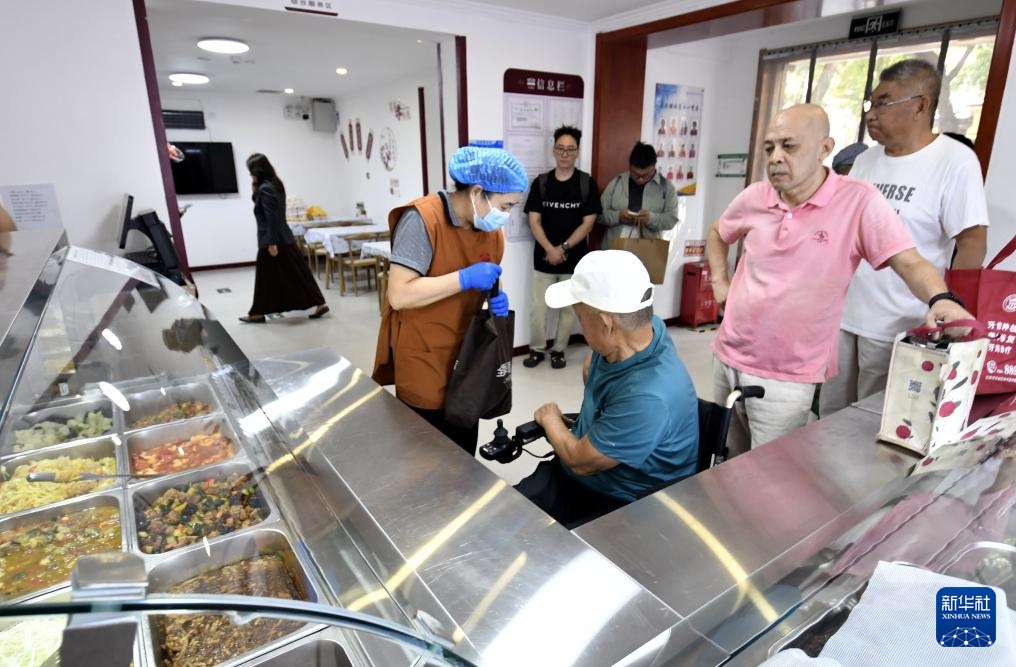9月26日,朝阳区香河园街道的居民在老年餐厅购买午餐。