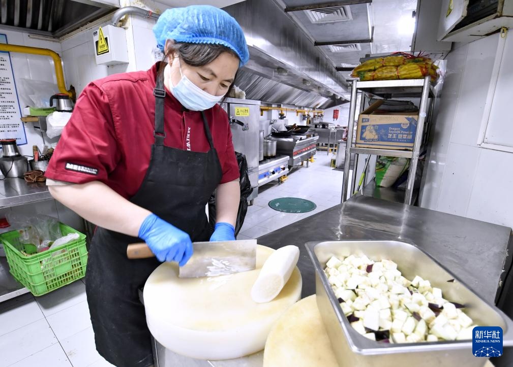 9月26日,朝阳区香河园街道的中央厨房的厨师在为老人们烹制午餐。