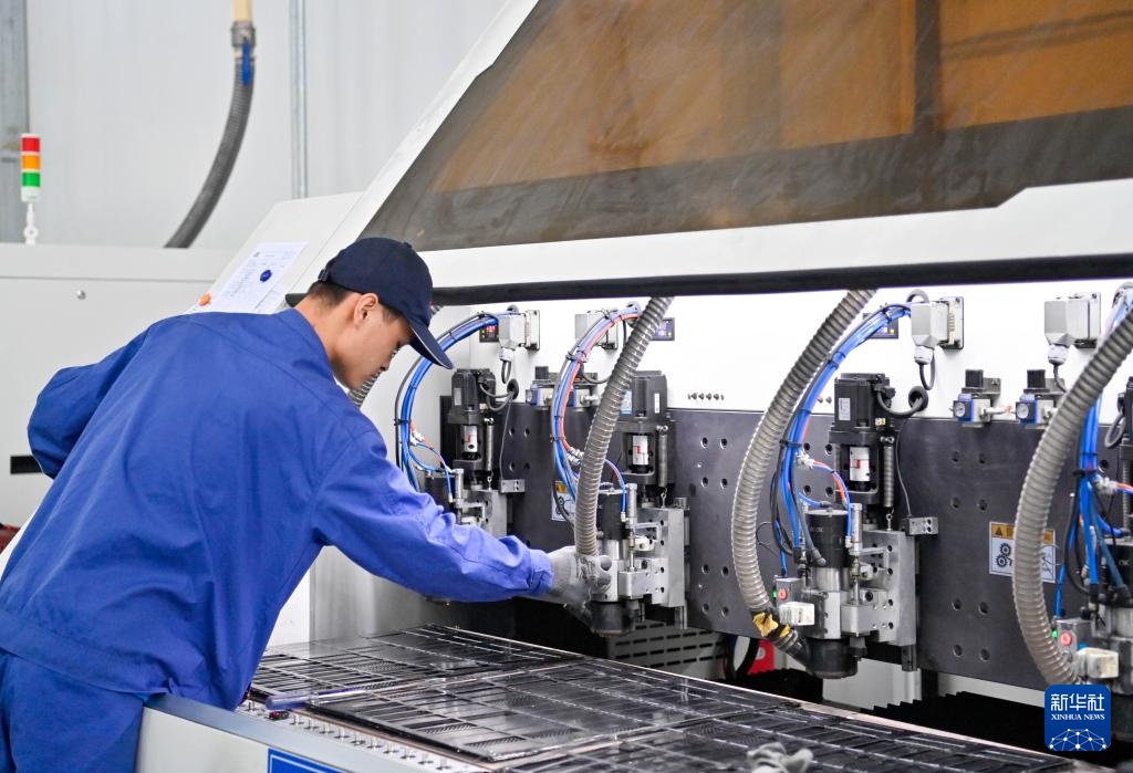工作人员在吉林化纤集团国兴复材有限公司车间操控雕刻机加工碳纤维复材制件(9月17日摄)。