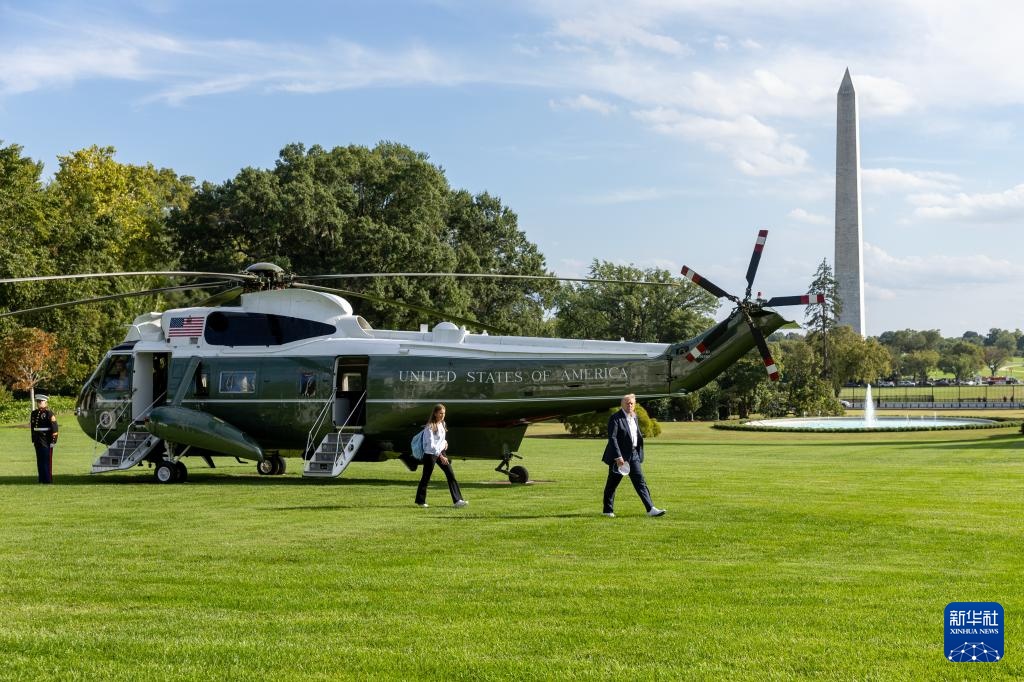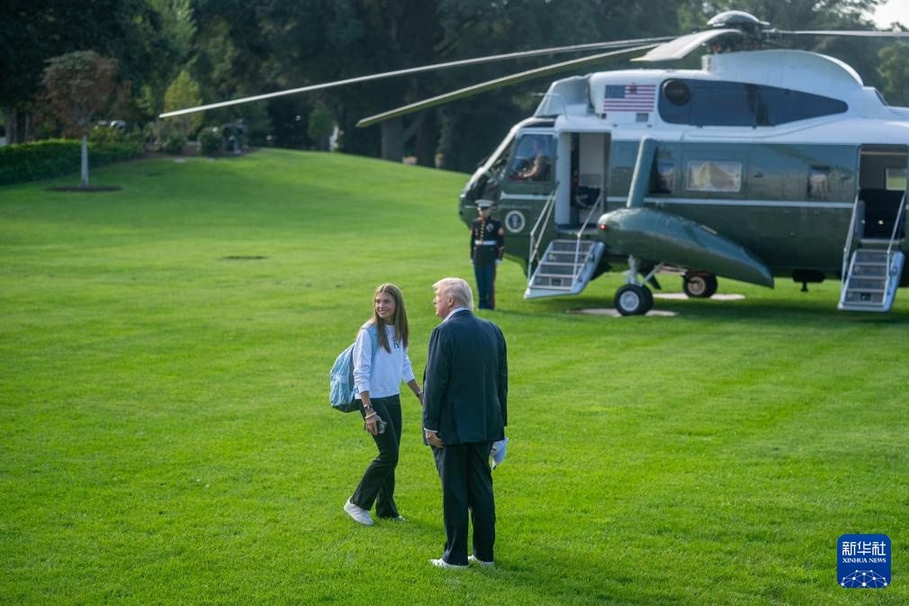 9月26日,美国总统特朗普(右)和孙女乘直升机返抵首都华盛顿白宫。