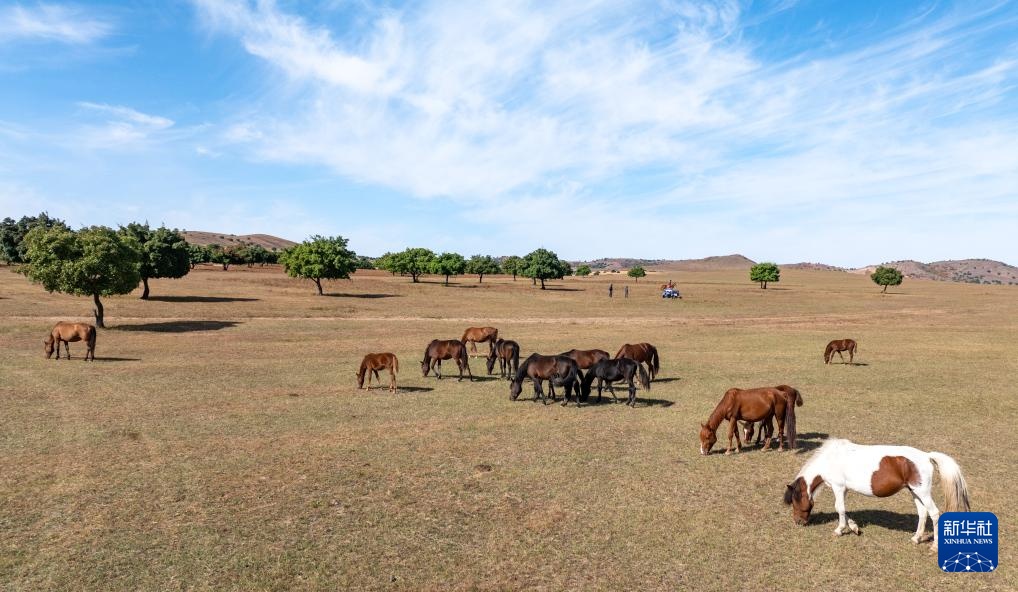 9月27日拍摄的兴安盟科尔沁右翼中旗五角枫生态旅游景区秋景(无人机照片)。