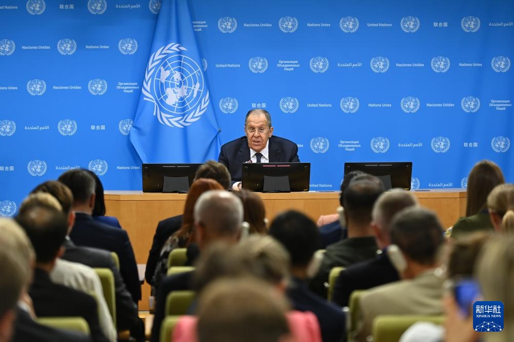 9月27日,在位于纽约的联合国总部,俄罗斯外交部长拉夫罗夫出席联大一般性辩论后举行的记者会。