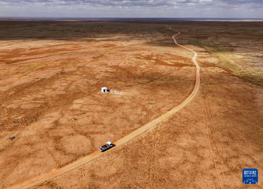 9月23日,钢宝力达驾驶救援车行驶在草原路上(无人机照片)。