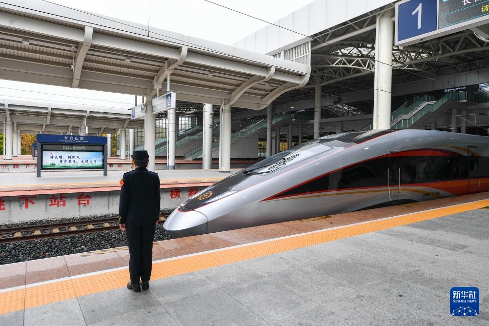 9月28日,从长白山站开往沈阳北站的G8166次列车驶入长白山站。