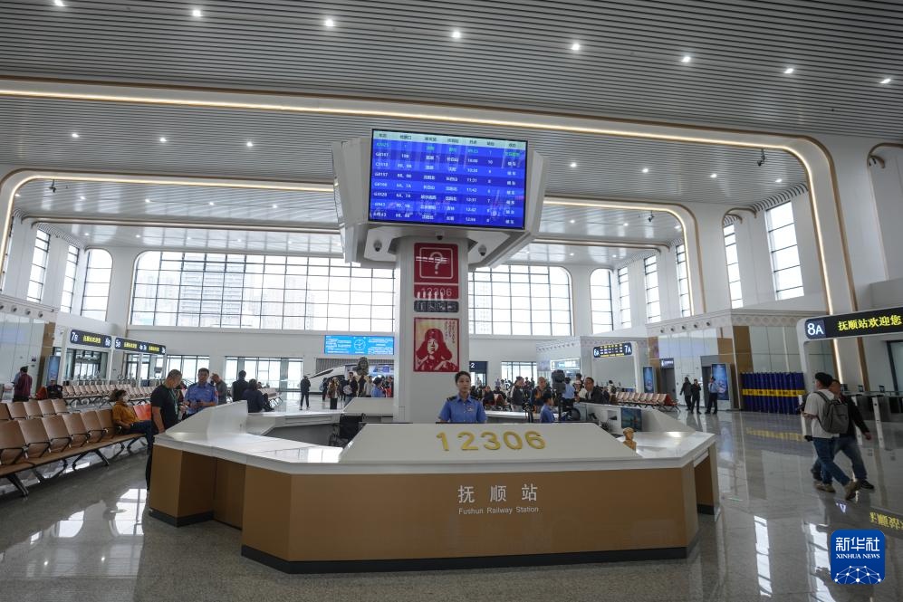 9月28日拍摄的抚顺站候车大厅。