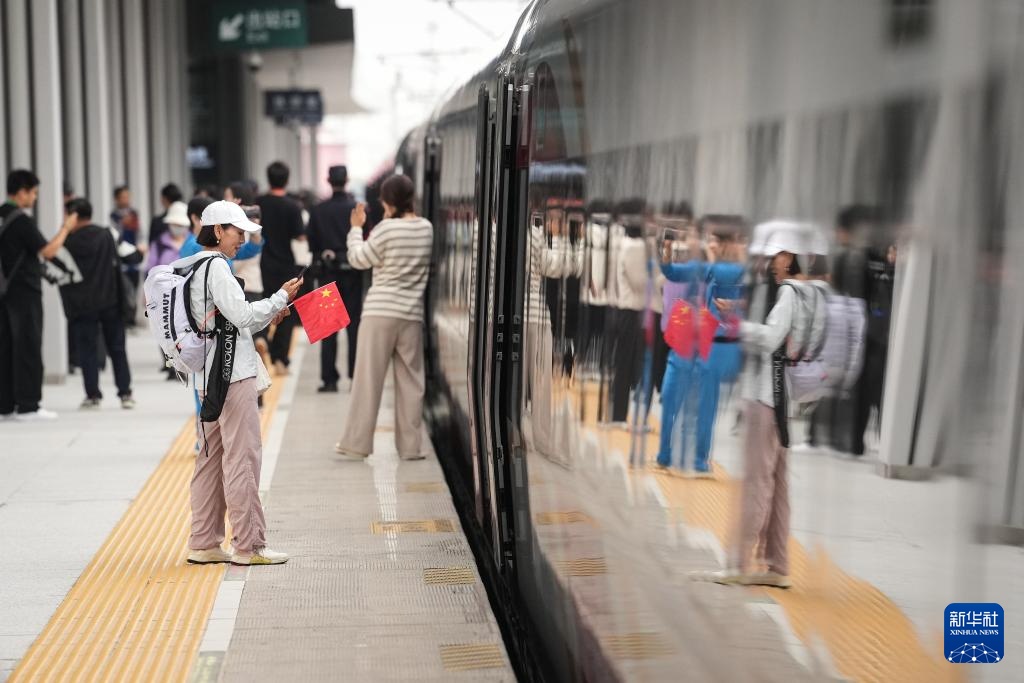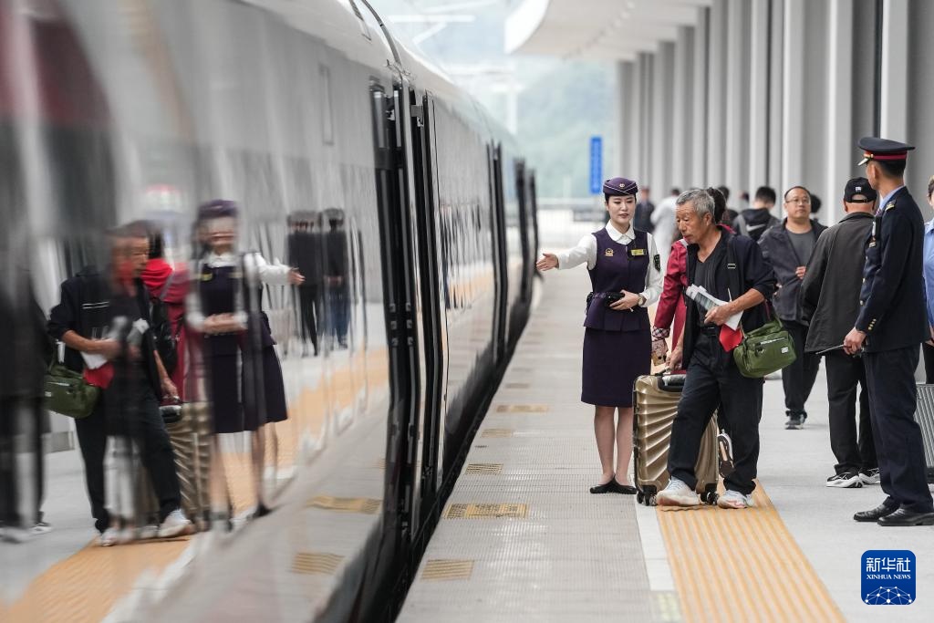 9月28日,旅客在长白山站陆续登上G8166次列车。