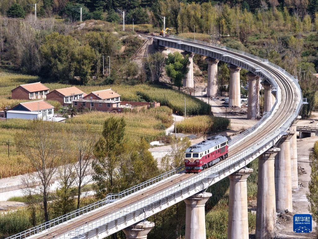 9月28日,列车驶过京通铁路河北隆化段(无人机照片)。