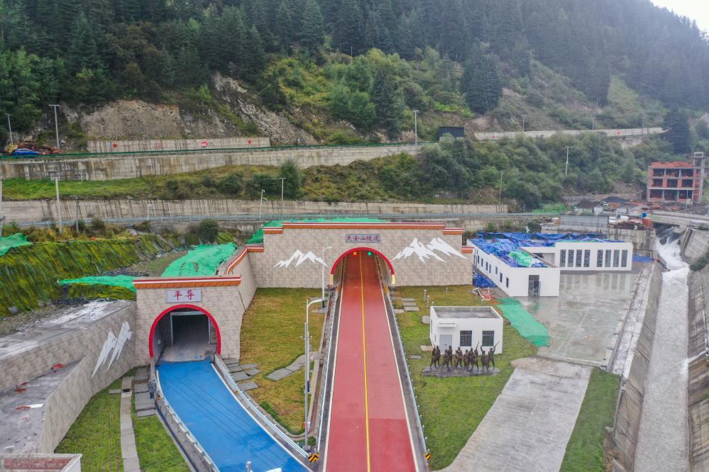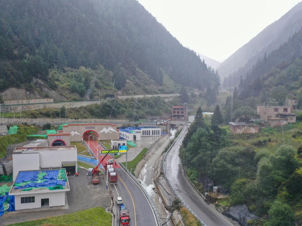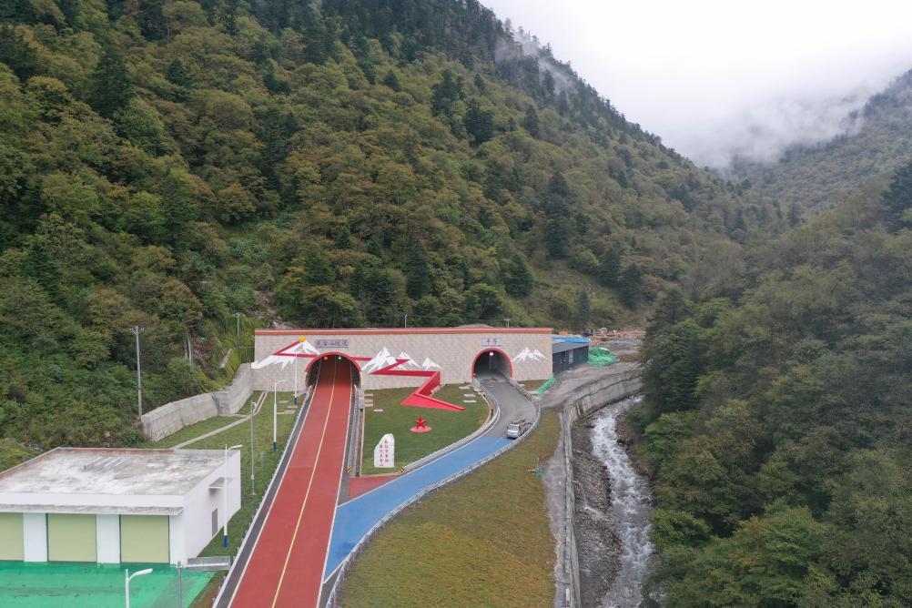 这是9月28日在四川省小金县拍摄的夹金山隧道出口(无人机照片)。