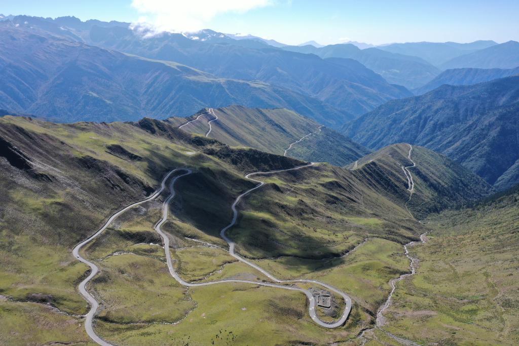 9月24日拍摄的通往夹金山垭口的路(无人机照片)。