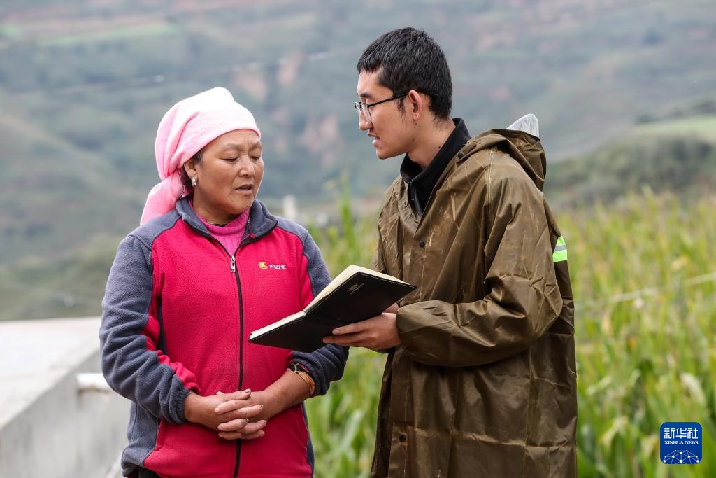 9月28日,在定西市漳县武阳镇汪家河村卢家屲社,乡镇干部摸排转移安置人员情况。
