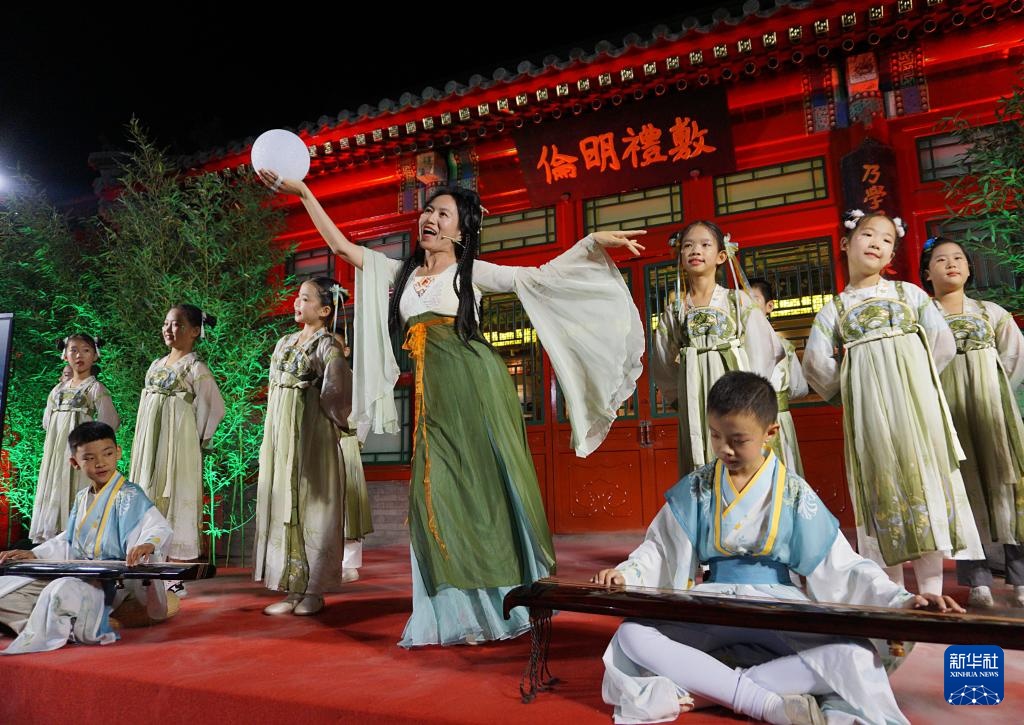 9月28日,府学胡同小学师生在中秋诗会活动中表演节目。