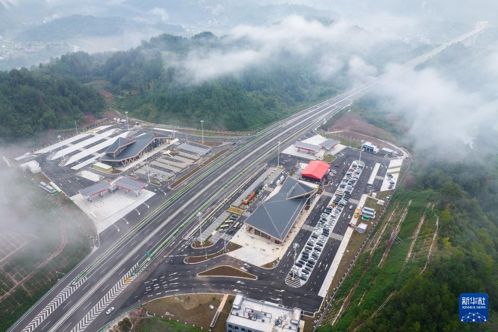 这是9月29日在张家界市桑植县拍摄的桑龙高速桑植服务区(无人机照片)。