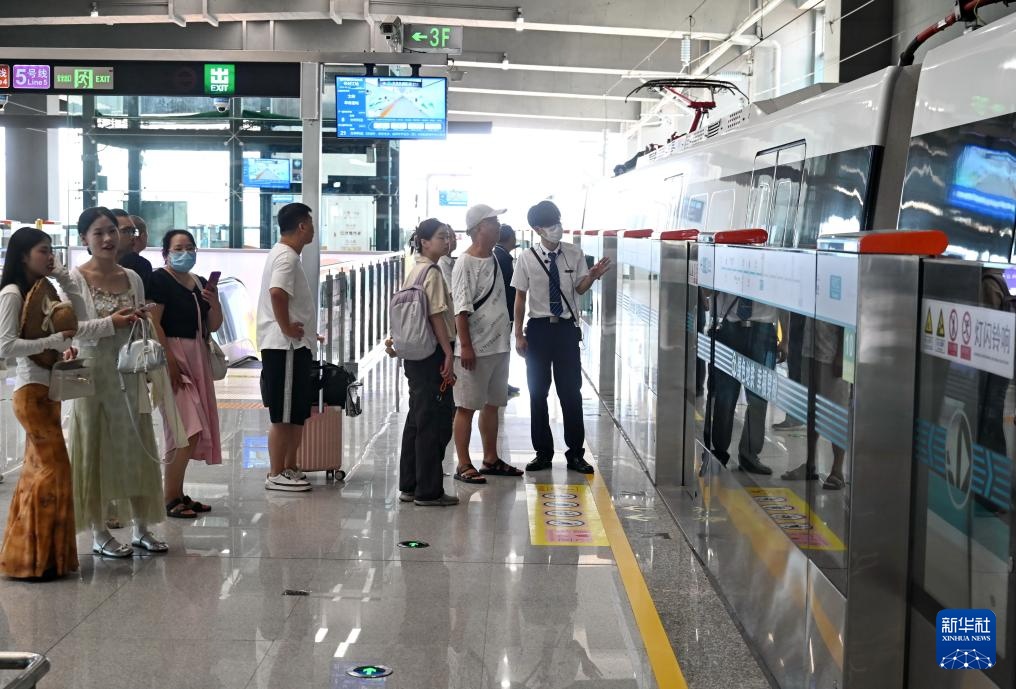 9月29日,人们在滨海快线帝封江站等候前往福州长乐国际机场的列车。