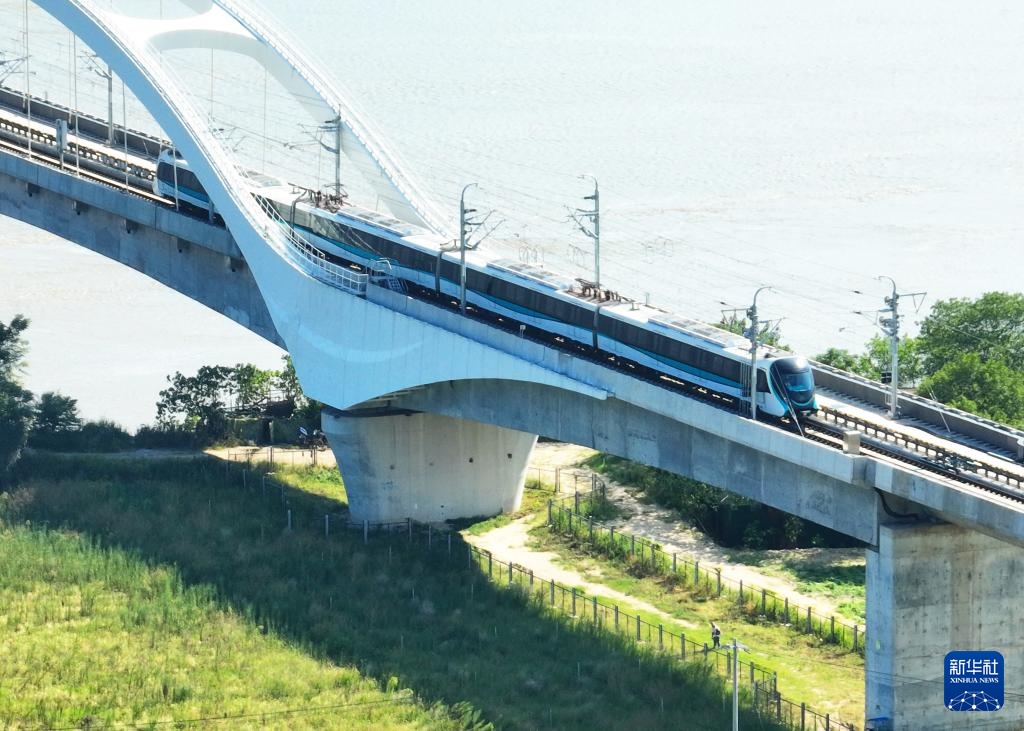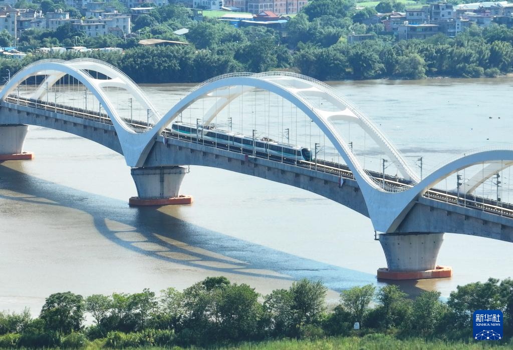 9月29日,列车驶入滨海快线帝封江站(无人机照片)。