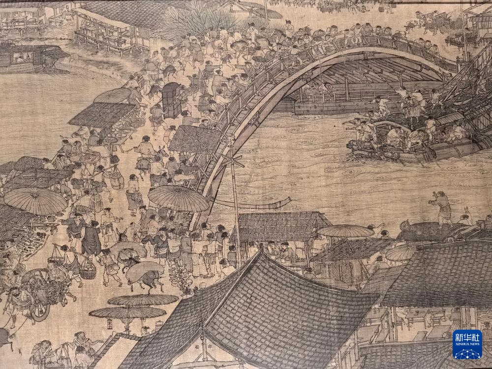 9月29日拍摄的清明上河图卷局部(手机照片)。