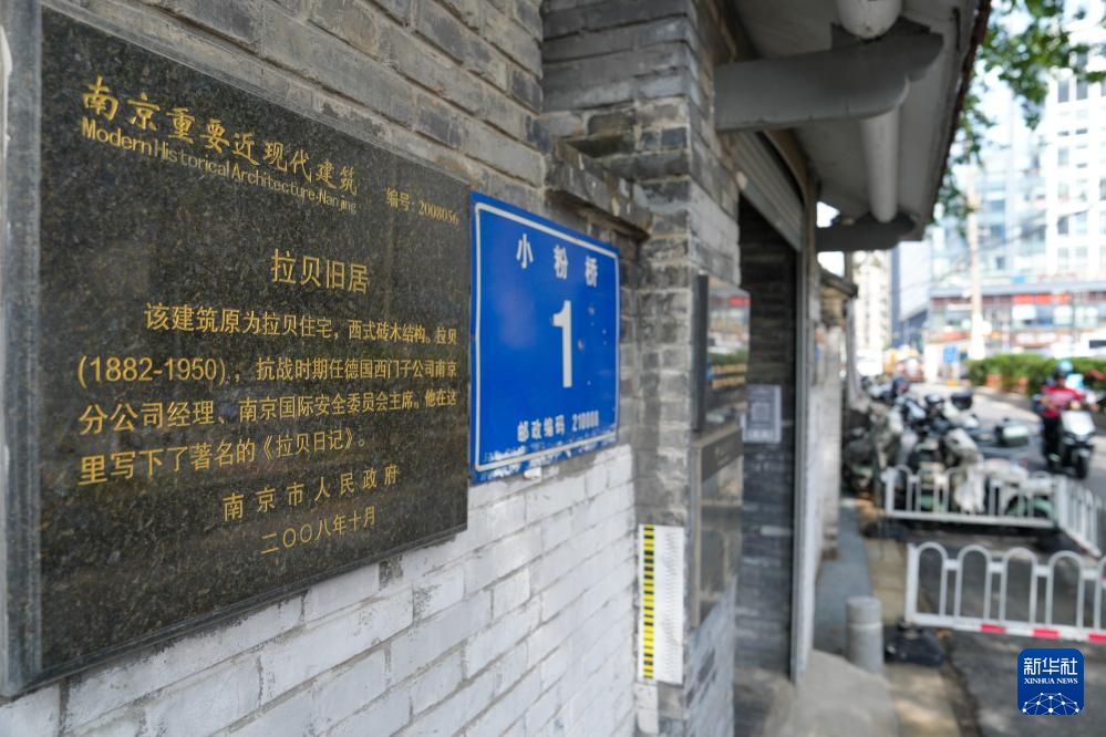 南京大学拉贝与国际安全区纪念馆外的拉贝旧居标牌(9月28日摄)。
