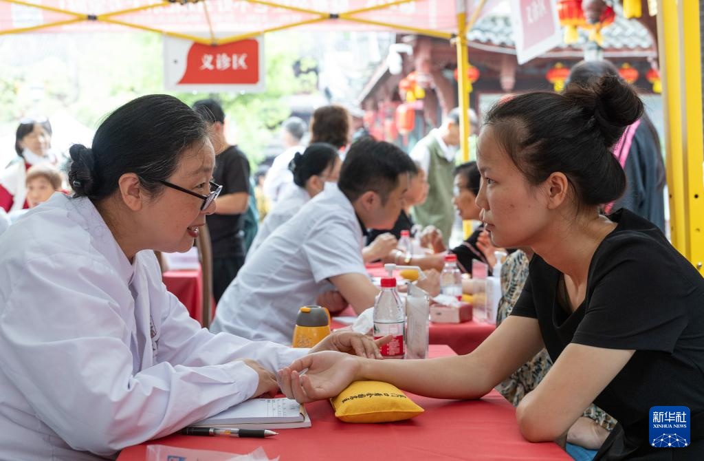 这是9月30日拍摄的重庆璧山中医药特色文化街区中医义诊区。