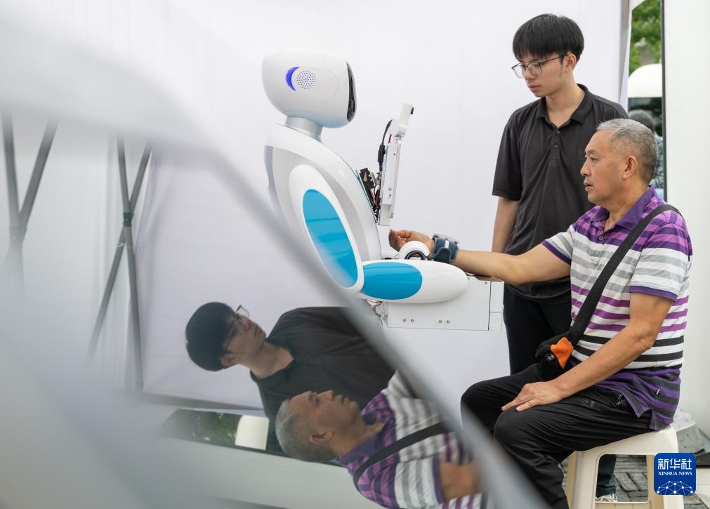 9月30日,市民在重庆璧山中医药特色文化街区体验移动中医智能机器人诊疗服务。