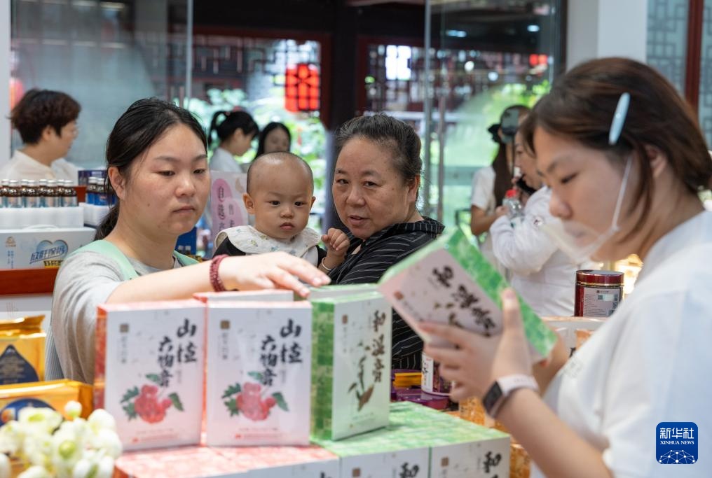 9月30日,市民在重庆璧山中医药特色文化街区商店选购。