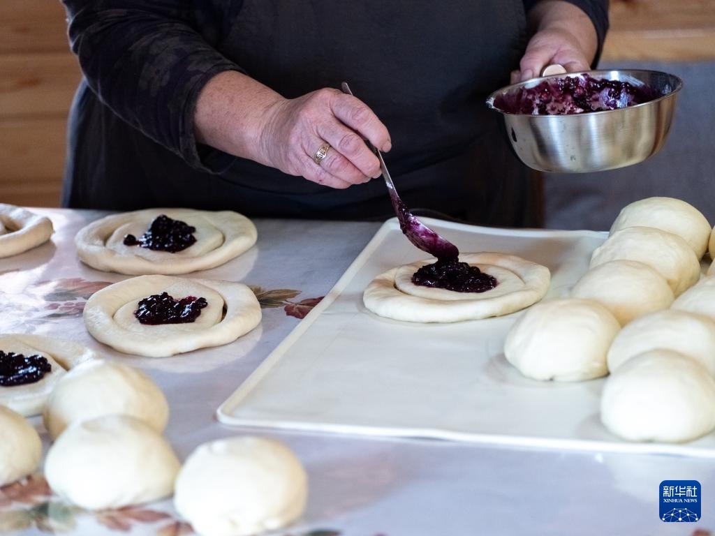 9月26日,在内蒙古呼伦贝尔市额尔古纳市恩和俄罗斯族民族乡,孙运梅制作野生蓝莓馅的列巴。新华社记者 马金瑞 摄pagebreak
