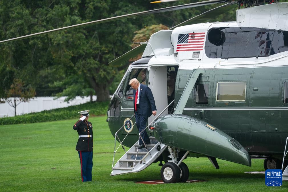 9月30日,在美国首都华盛顿,美国总统特朗普乘直升机返抵白宫。