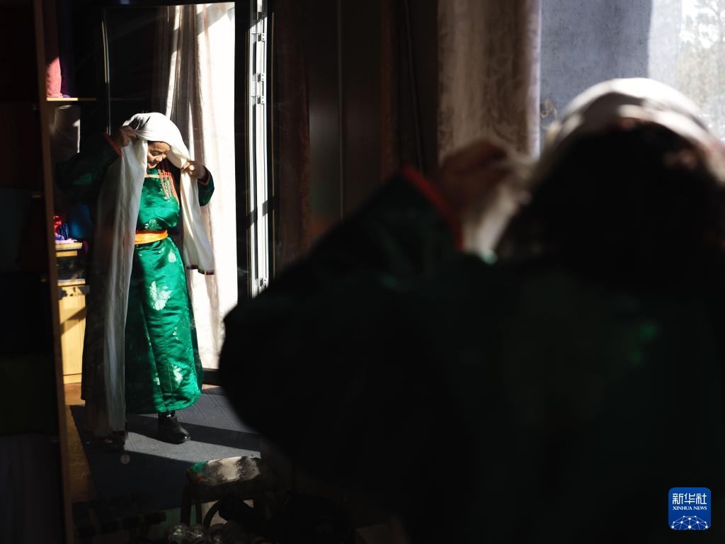 9月26日,通嘎拉嘎在整理服装。