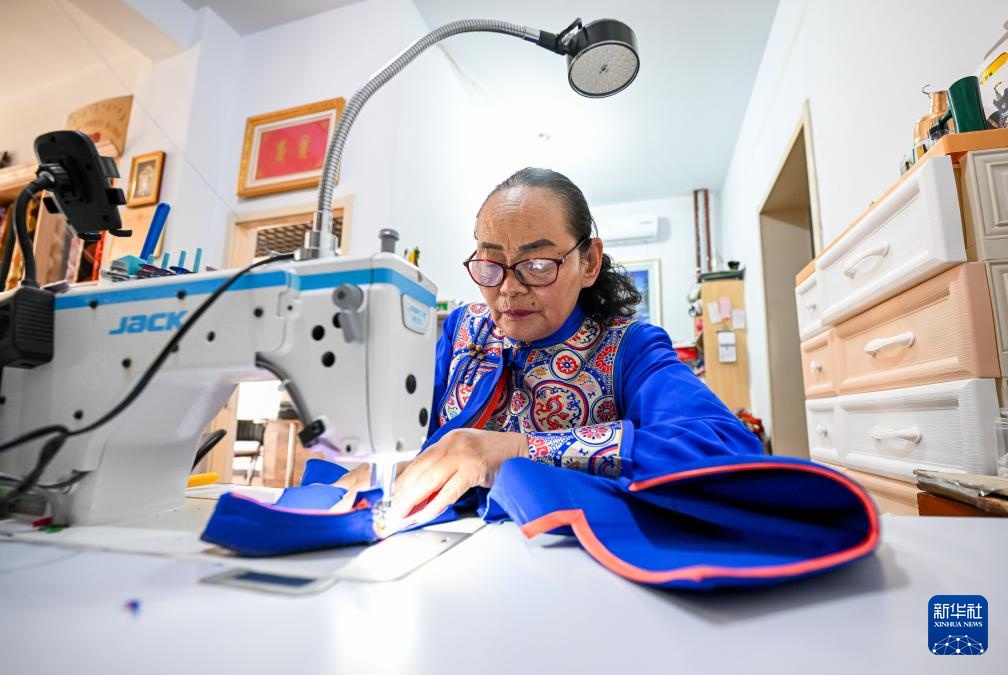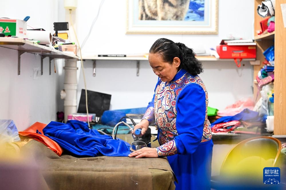 9月26日,通嘎拉嘎在缝制蒙古袍。