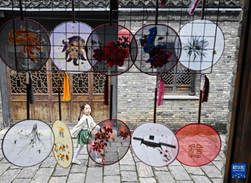 10月1日,小朋友走在盱眙县第一山历史文化街区。