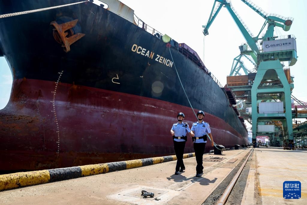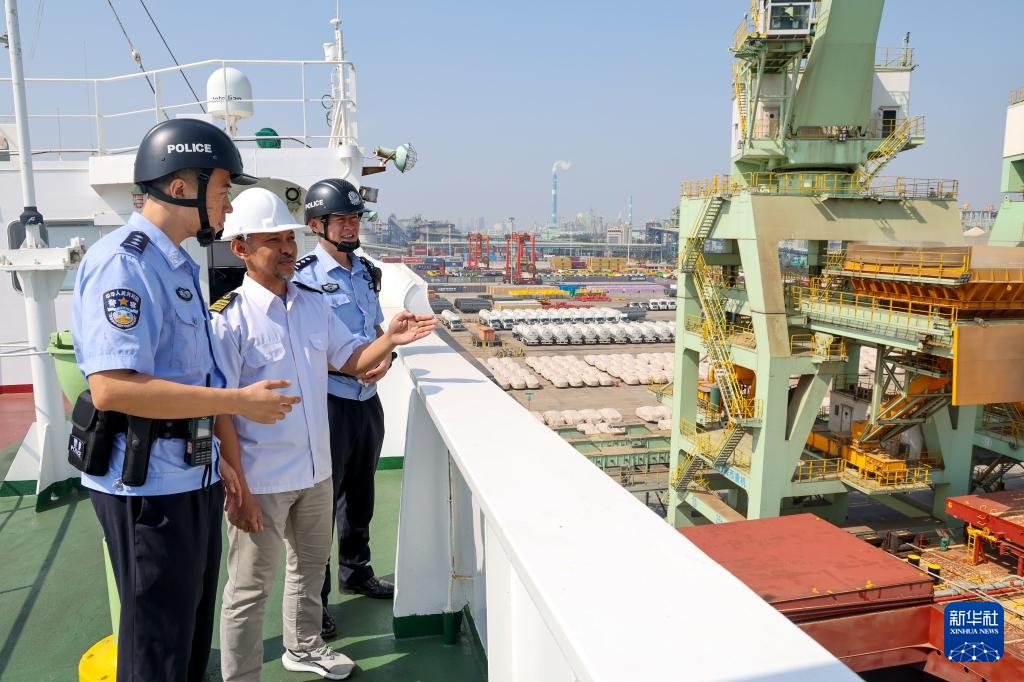 10月1日,山东日照出入境边防检查站的民警坚守一线,通过人工巡查、登轮检查等,维护国际船舶在港安全,保障口岸出入境通关高效畅通。