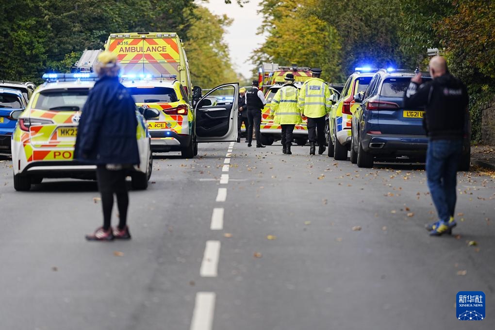 10月2日,警察(左)在英国曼彻斯特的犹太教堂袭击事件现场工作。