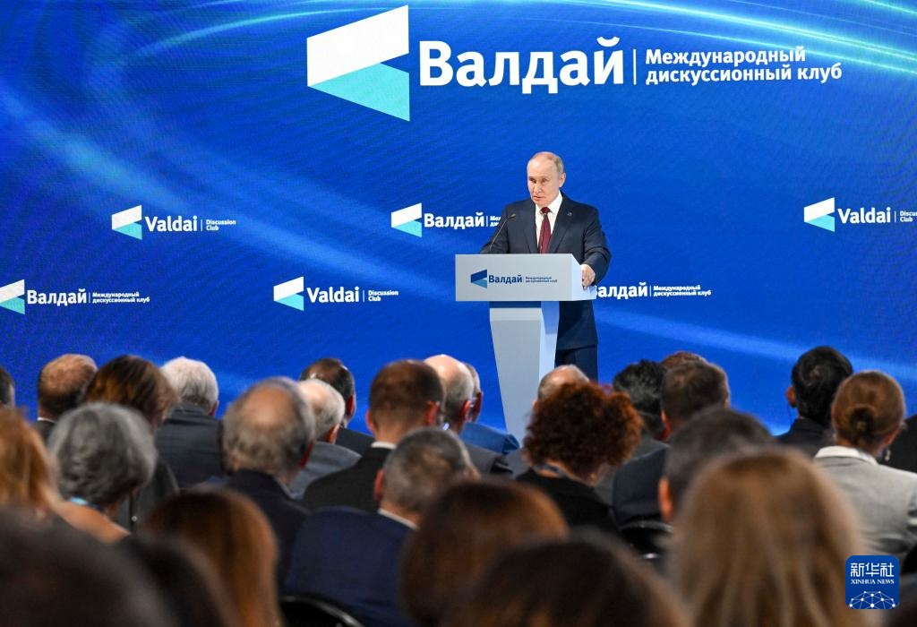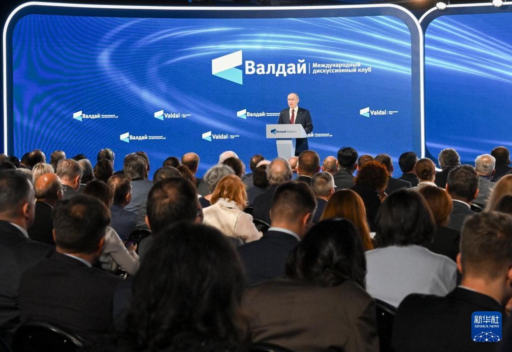 10月2日,在俄罗斯索契,俄罗斯总统普京出席俄智库瓦尔代国际辩论俱乐部第22届年会全体会议并发表讲话。