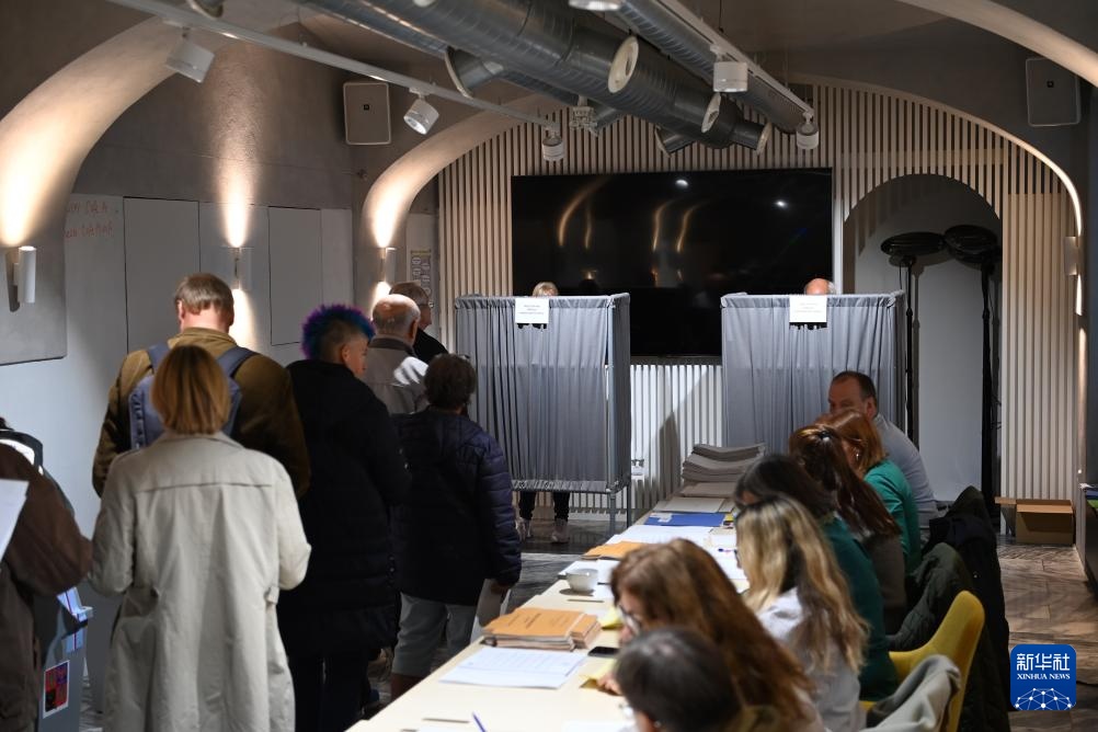 10月3日,市民在捷克布拉格一处投票站登记投票。