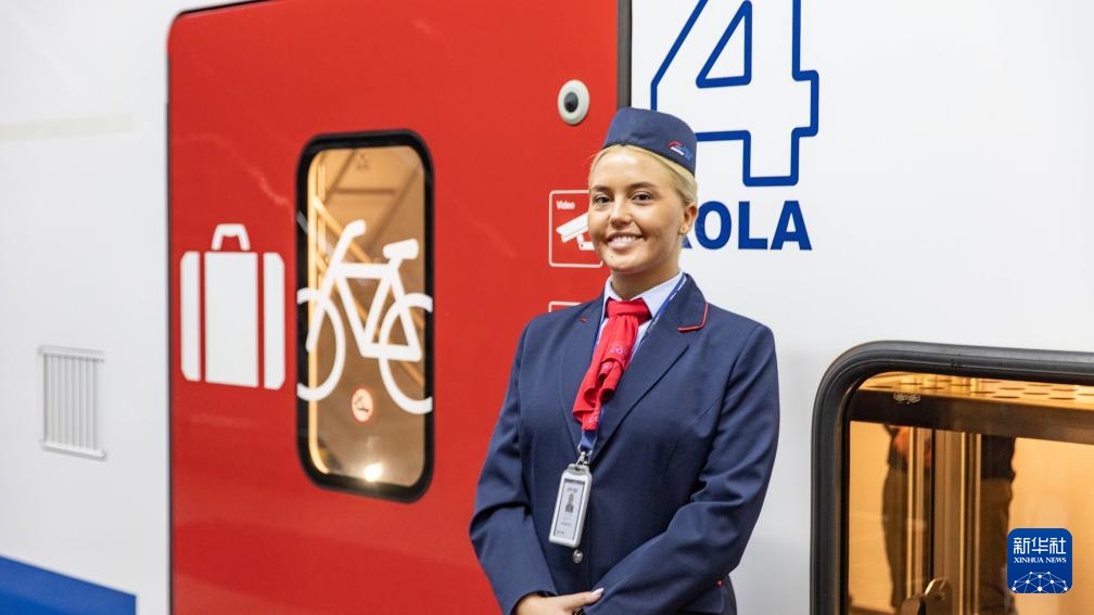 10月3日,在塞尔维亚首都贝尔格莱德,乘务员迎候乘客搭乘中企承建的匈塞铁路列车。