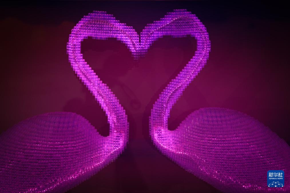 这是10月3日在波兰华沙举行的乐高积木展上拍摄的火烈鸟模型。