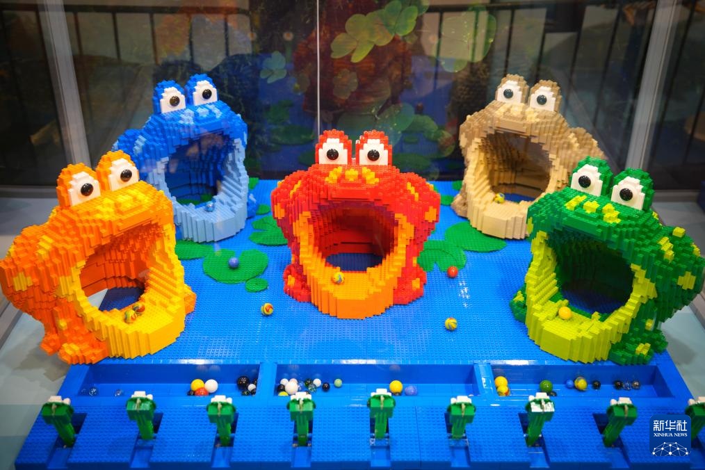 这是10月3日在波兰华沙举行的乐高积木展上拍摄的卡通青蛙模型。