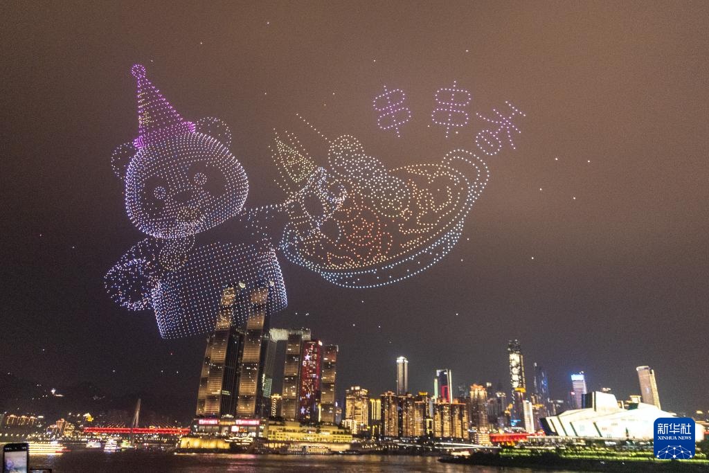 这是10月2日晚在重庆市南岸区南滨路拍摄的无人机灯光秀。