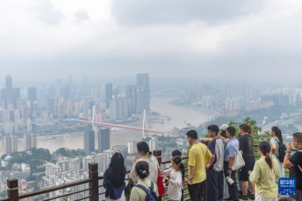 10月2日,游客在重庆市南岸区老君洞观景平台欣赏城市景观。