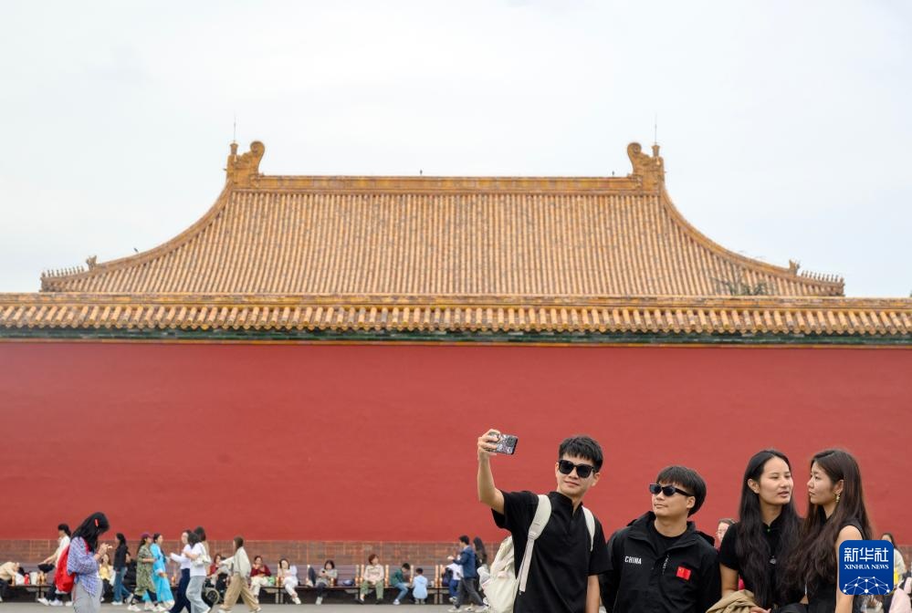 10月2日,游客在故宫外拍照。