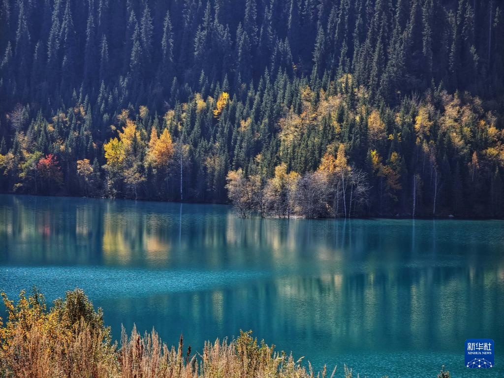 这是10月4日在哈萨克斯坦阿拉木图州拍摄的伊塞克峡谷秋日风光(无人机照片)。