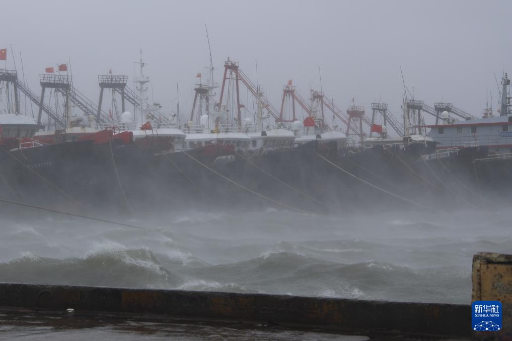 10月5日,在广东省茂名市电白区博贺港,台风在海面掀起海浪。