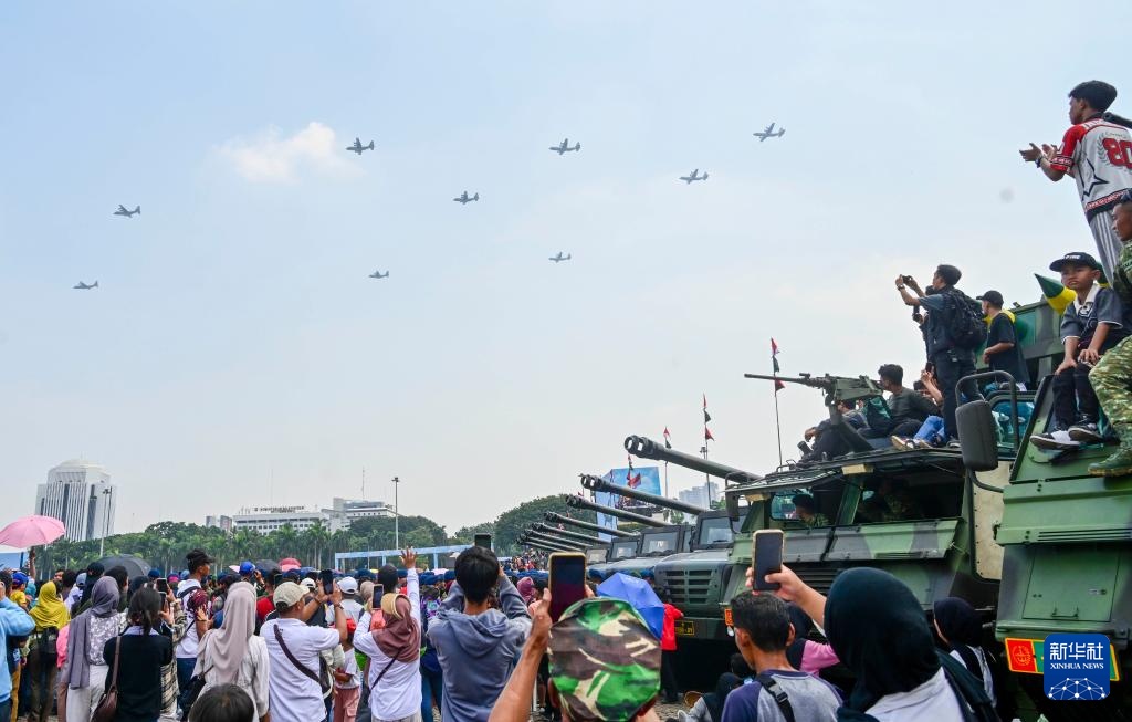 10月5日,在印度尼西亚雅加达,民众观看国民军建军80周年庆祝活动。
