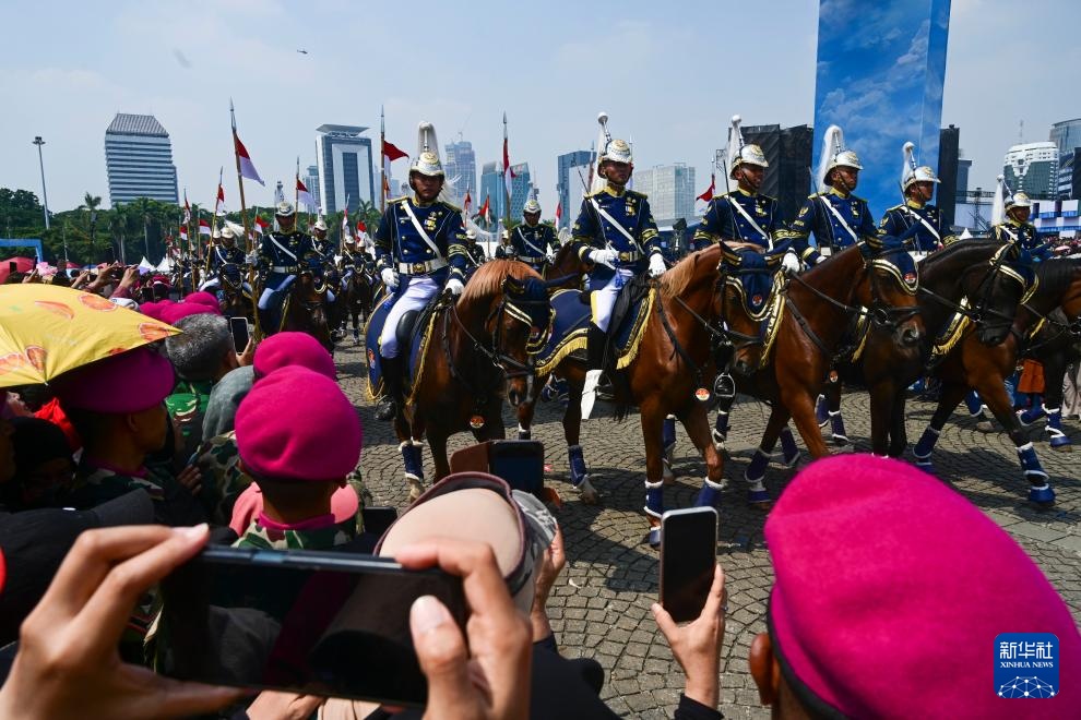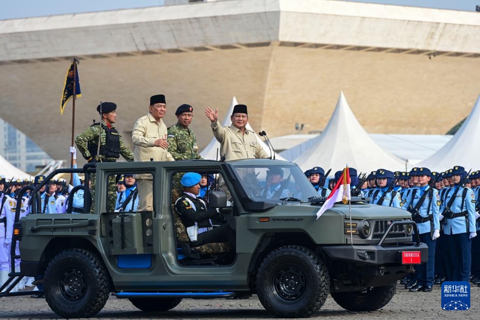 10月5日,在印度尼西亚雅加达,印尼总统普拉博沃出席国民军建军80周年庆祝活动。
