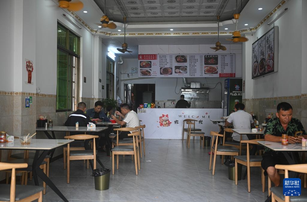 10月6日,人们在海南文昌一家恢复营业的餐厅用餐。