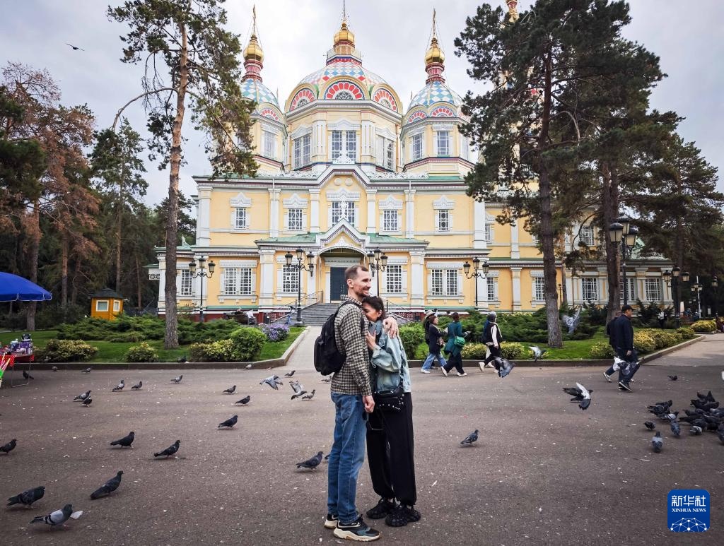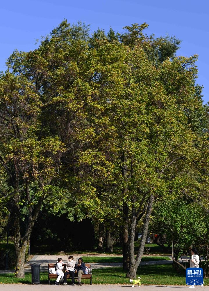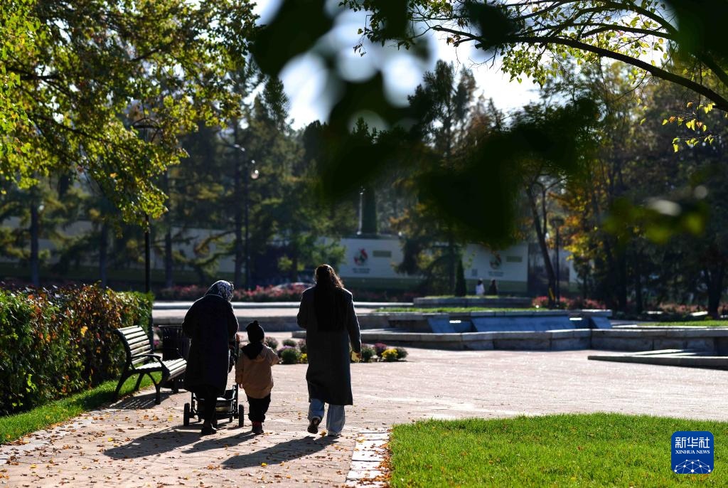 进入秋季,哈萨克斯坦第一大城市阿拉木图秋高气爽,许多市民来到户外享受秋日。
